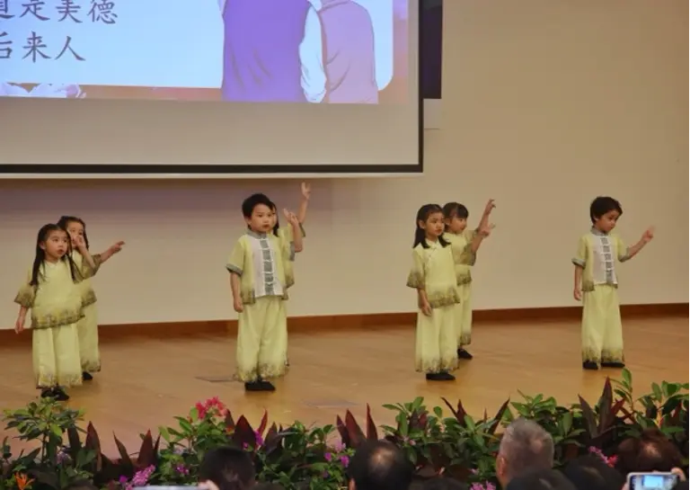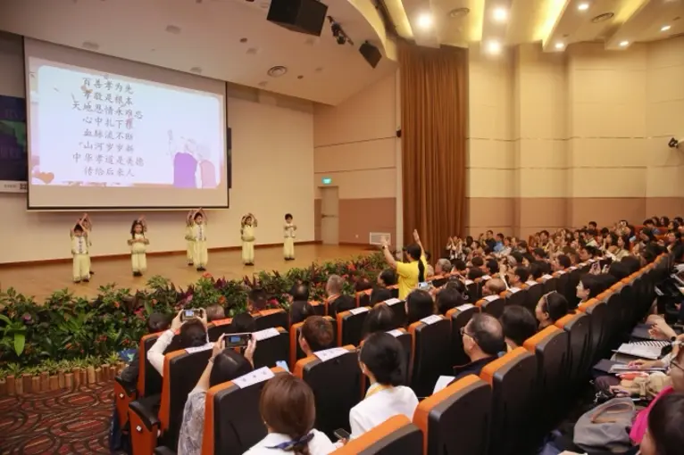 Nine children from Nursery to Kindergarten 2 at ELFA Preschool @ Hougang opened the International Symposium on “The Present and Future of International Chinese Education in the Digital Intelligence Era” with a moving song and dance performance on Filial Piety.